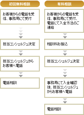 ただし有料電話相談につきましては、平日18:00〜21:00と土日祝日は入金確認ができないため、担当ハウジングコンシェルジュからの連絡が遅れる場合がございますのでご了承ください。